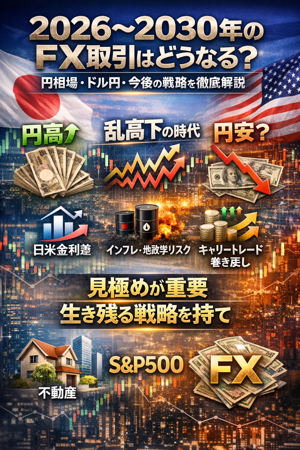 つまり、2026〜2030年のFXは、過去数年のように「円安一本調子をただ追えばいい」という相場ではなくなりつつあります。本記事では、資産ポートフォリオ、不動産、S&P500の議論をベースに、今後のFX取引について現実的な観測を整理します。